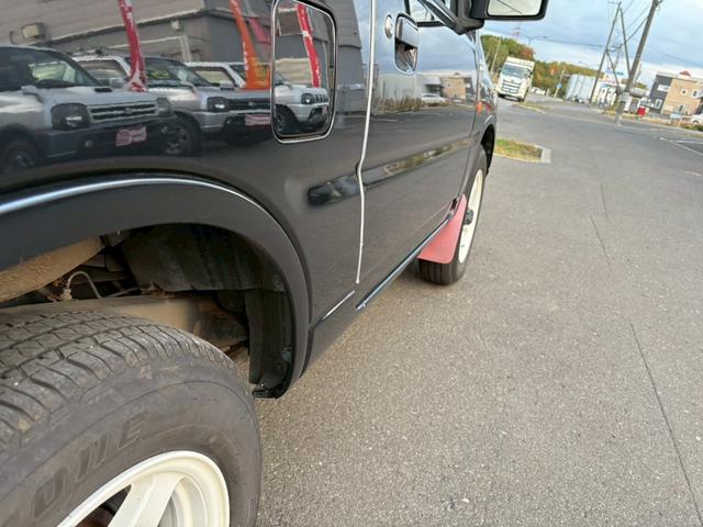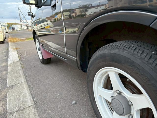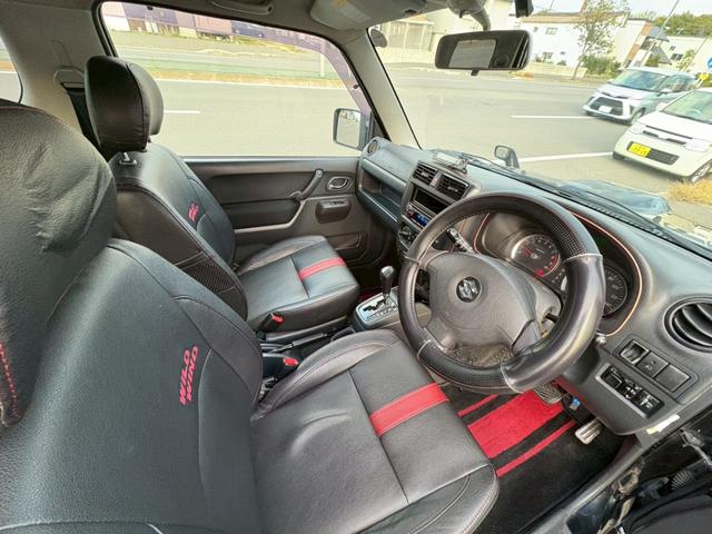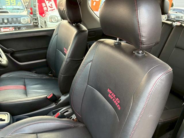 スズキ ジムニーワイルドウインド AT車 フォグランプ 電動格納ミラー マッドガード ハーフレザーシート ABS 4WD ドアミラーウィンカー スペアタイヤ ルーフレール ライトレベライザー 新規車検付き
