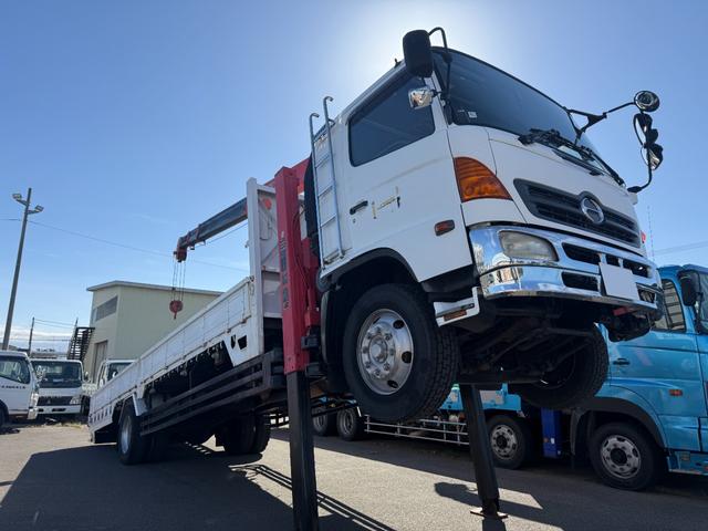 日野 レンジャープロ 5.8t セルフ4段クレーン ユニック製URU504H ロングジャッキ ラジコン付 荷台寸7.85m長×2.38m幅 走行356000km 235馬力 6速 定員2名 車検令和8年4月迄