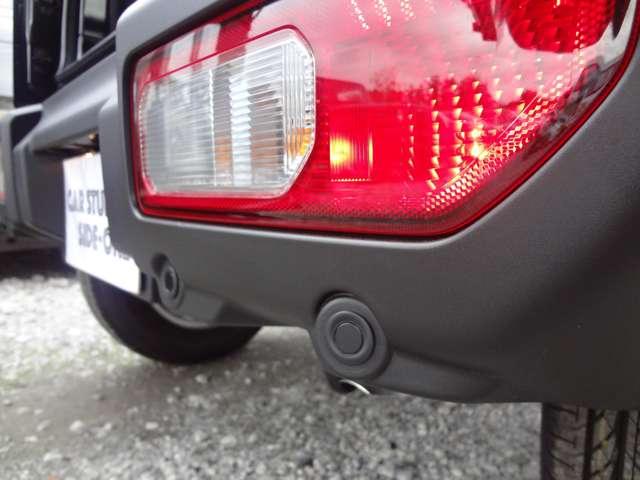 リアパーキングセンサー搭載!! リアバンパーに内蔵された4つの超音波センサーが後方の障害物との距離を測定し、4段階のブザー音とメーター表示でドライバーに注意を促します。
