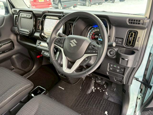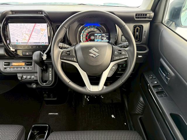 スズキ ハスラーハイブリッドXターボ 4WD 全方位モニター付メーカー9インチナビ シートヒーター デュアルカメラブレーキサポート 追従クルコン パーキングセンサー BTオーディオ フルセグTV USB パドルシフト LEDライト 純正15AW