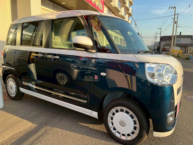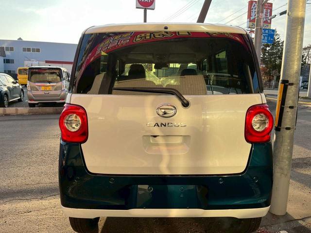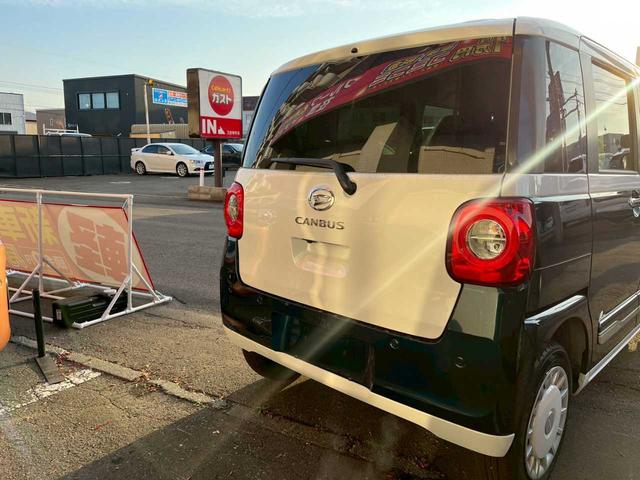 ダイハツ ムーヴキャンバスストライプスG 4WD 届出済未使用 プッシュスタート スマートアシスト 両側パワースライドドア アイドリングストップ 純正14インチホイールキャップ スペアキー LEDヘッドライト LEDフォグランプ メッキガーニ