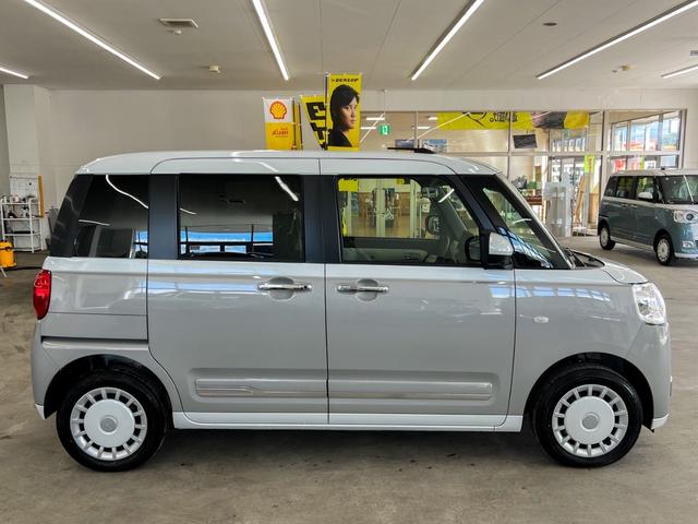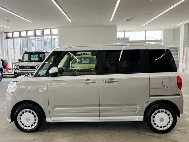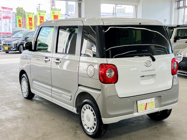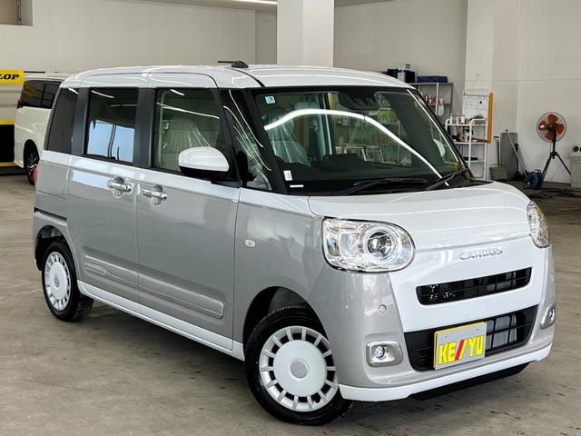 ダイハツ ムーヴキャンバスストライプスGターボ 4WD 届出済未使用車 新品ナビ取り付け Bluetooth フルセグTV 全方位カメラ 両側電動スライドドア 衝突被害軽減ブレーキ シートヒーター レーダークルーズコントロール コーナーセンサー
