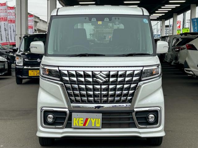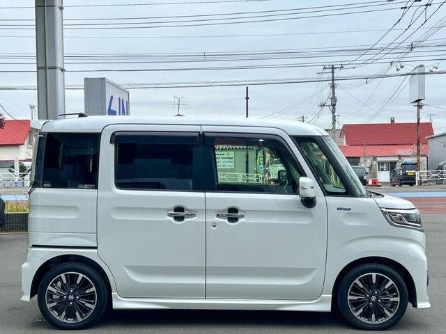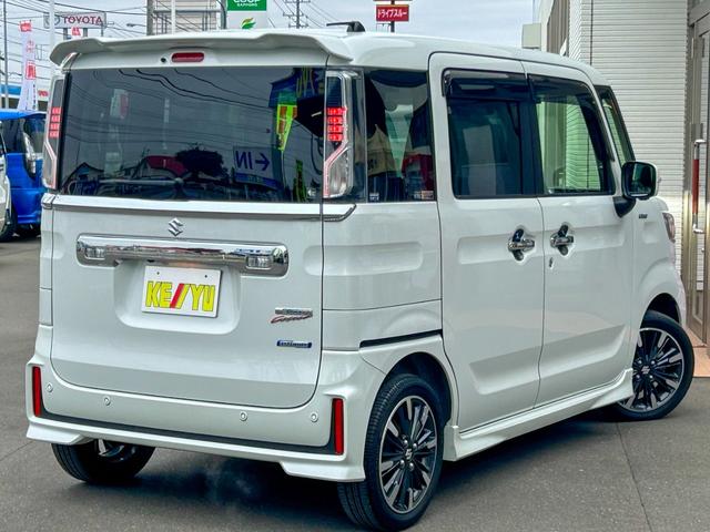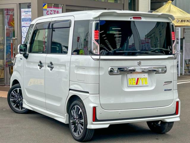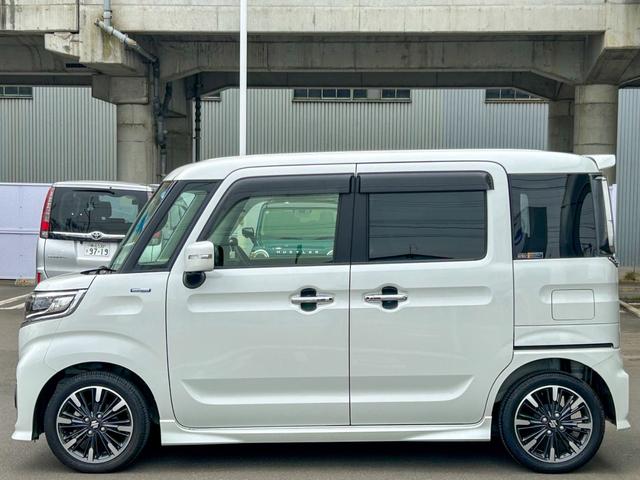 スズキ スペーシアカスタムハイブリッドXS 4WD 後期型 社外8型ナビ 地デジTV Bluetooth 全方位カメラ 両側電動スライド ETC レーダークルーズ レーダーブレーキサポート コーナーセンサー ハーフレザーシート シートヒーター