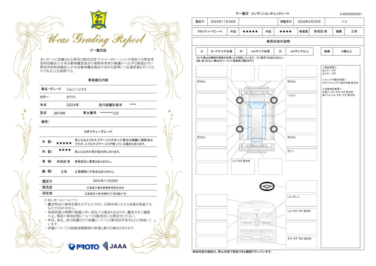 | 記録簿 | ー | 輸入認定中古車 | ○ |