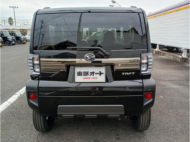 ダイハツ タフトG ダーククロムベンチャー 届出済未使用車 特別装備ダークブラックメッキ・ガンメタリック塗装 フードガーニッシュ・アンダーガーニッシュ・バックドアガーニッシュ 15インチAW ブラックマイカメタリック塗装 ドアアウターハンドル