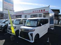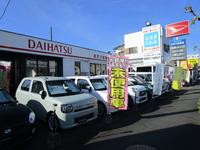ダイハツの赤い看板が目印です。未使用車は随時20台在りますので、お好きな車種をお選び下さい。
