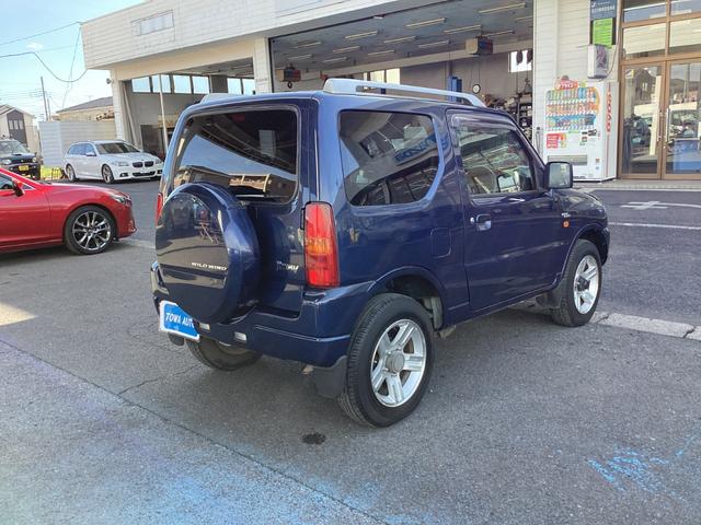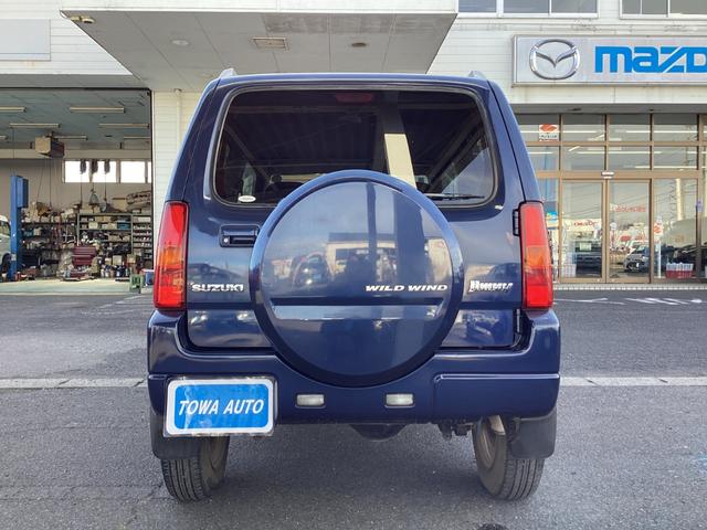 スズキ ジムニーワイルドウインド 4WD ターボ車 シートヒーター ETC フォグランプ 電動格納ミラー 衝突安全ボディ ルーフレール キーレスエントリー 背面タイヤ