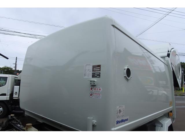 三菱ふそう キャンター 新明和 巻込みパッカー車 6.5立米 積載3300kg 連続スイッチ付 汚水タンク付