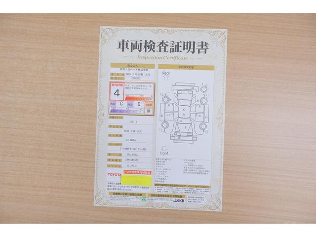店頭にて、クルマの状態が一目で分かる検査証明書を公開中。トヨタ認定検査員が厳しく査定し、状態を点数と図解で表示しています。修復歴はもちろん、傷やヘコミの箇所や程度がご確認いただけます。