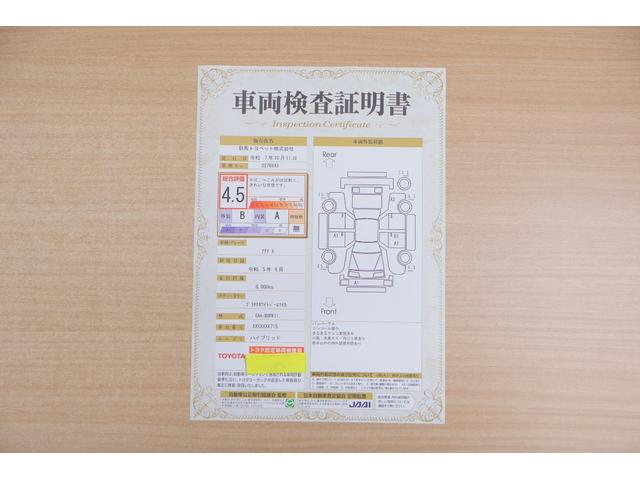 店頭にて、クルマの状態が一目で分かる検査証明書を公開中。トヨタ認定検査員が厳しく査定し、状態を点数と図解で表示しています。修復歴はもちろん、傷やヘコミの箇所や程度がご確認いただけます。