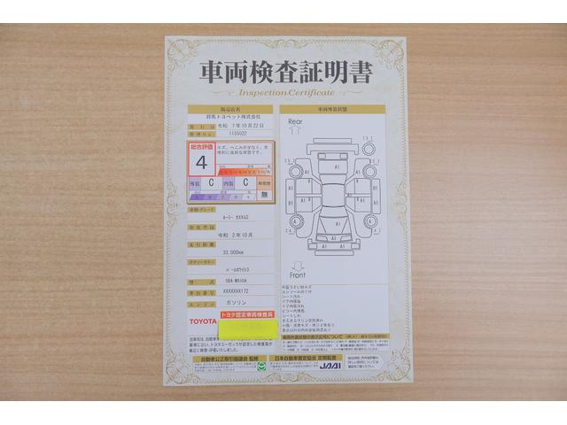 店頭にて、クルマの状態が一目で分かる検査証明書を公開中。トヨタ認定検査員が厳しく査定し、状態を点数と図解で表示しています。修復歴はもちろん、傷やヘコミの箇所や程度がご確認いただけます。
