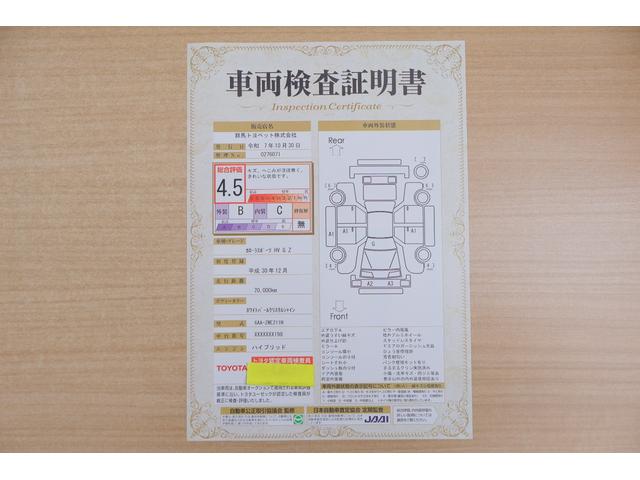 店頭にて、クルマの状態が一目で分かる検査証明書を公開中。トヨタ認定検査員が厳しく査定し、状態を点数と図解で表示しています。修復歴はもちろん、傷やヘコミの箇所や程度がご確認いただけます。
