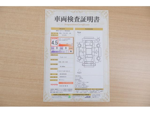 店頭にて、クルマの状態が一目で分かる検査証明書を公開中。トヨタ認定検査員が厳しく査定し、状態を点数と図解で表示しています。修復歴はもちろん、傷やヘコミの箇所や程度がご確認いただけます。