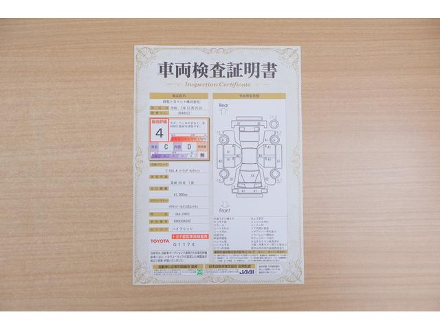 店頭にて、クルマの状態が一目で分かる検査証明書を公開中。トヨタ認定検査員が厳しく査定し、状態を点数と図解で表示しています。修復歴はもちろん、傷やヘコミの箇所や程度がご確認いただけます。
