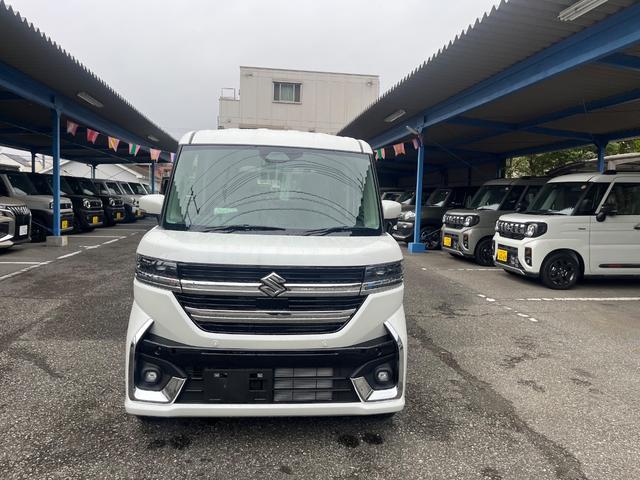 スズキ スペーシアカスタムハイブリッドXS Bluetooth地デジナビ フロアマット付届出済み未使用車 スズキセーフティサポート シートヒーター サーキュレーター 両側オートスライドドア LEDヘッドライト メーカー保証
