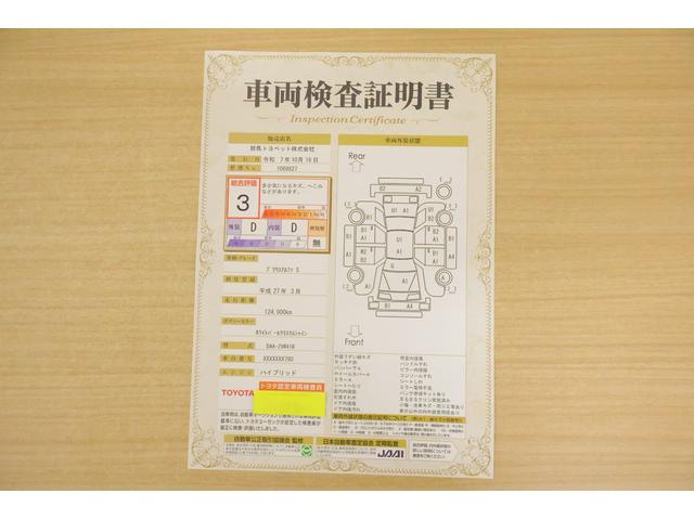店頭にて、クルマの状態が一目で分かる検査証明書を公開中。トヨタ認定検査員が厳しく査定し、状態を点数と図解で表示しています。修復歴はもちろん、傷やヘコミの箇所や程度がご確認いただけます。