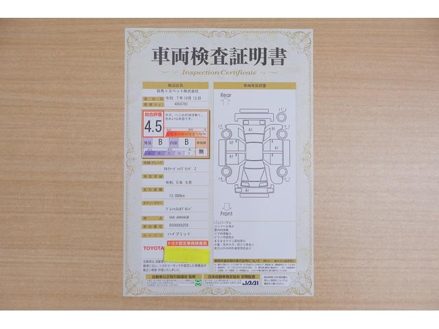 店頭にて、クルマの状態が一目で分かる検査証明書を公開中。トヨタ認定検査員が厳しく査定し、状態を点数と図解で表示しています。修復歴はもちろん、傷やヘコミの箇所や程度がご確認いただけます。