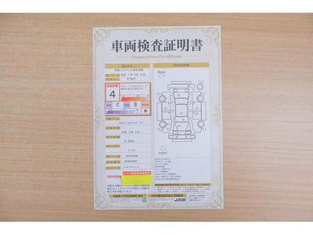 店頭にて、クルマの状態が一目で分かる検査証明書を公開中。トヨタ認定検査員が厳しく査定し、状態を点数と図解で表示しています。修復歴はもちろん、傷やヘコミの箇所や程度がご確認いただけます。