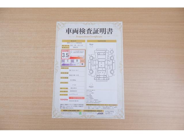 店頭にて、クルマの状態が一目で分かる検査証明書を公開中。トヨタ認定検査員が厳しく査定し、状態を点数と図解で表示しています。修復歴はもちろん、傷やヘコミの箇所や程度がご確認いただけます。