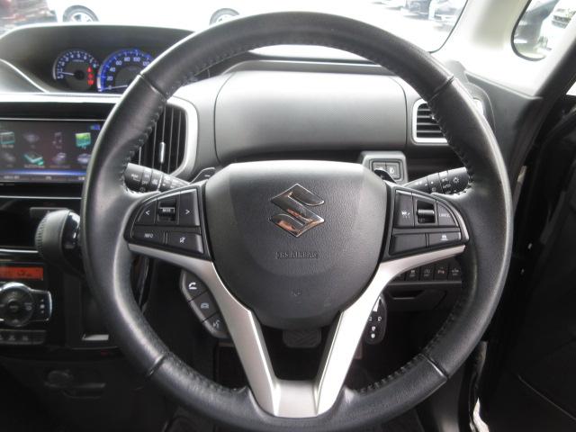 見た目も握り心地も豪華な革巻ステアリングも装備!ナビに連動したオーディオスイッチや高速走行時に役立つレーダークルコンも装備しています!