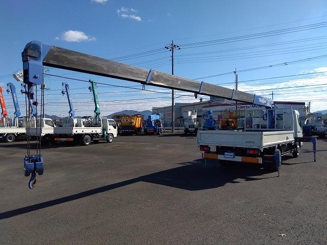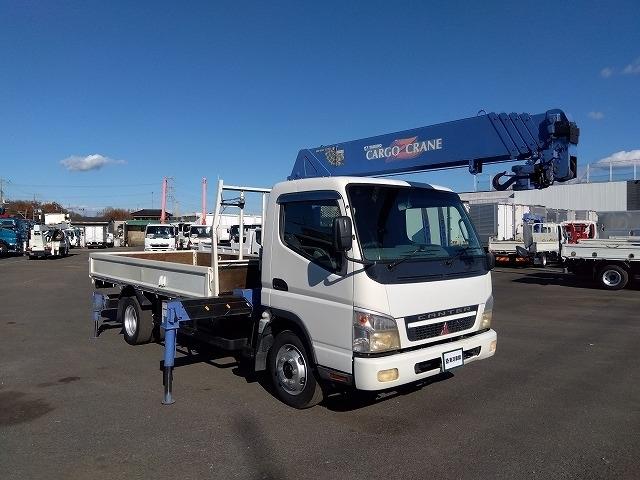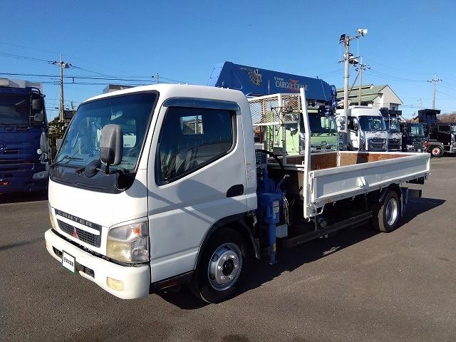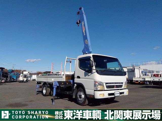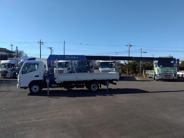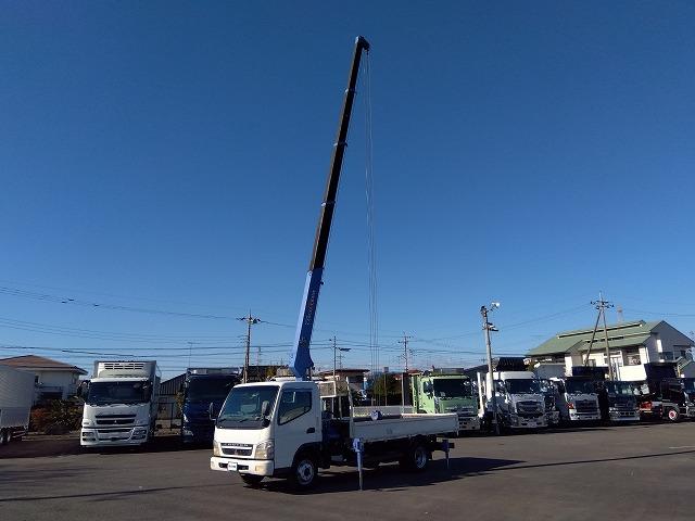 13841[クレーン付平ボディ] H18 キャンター 5段ラジコン 2.9t吊り リアジャッキ付 ワイド超ロング 積載3.4t