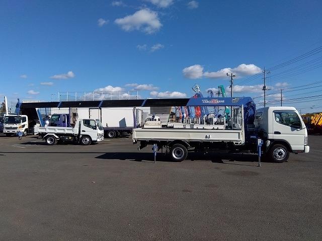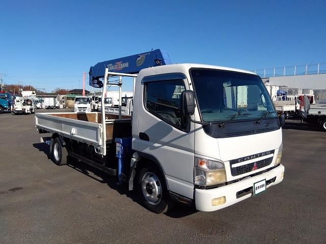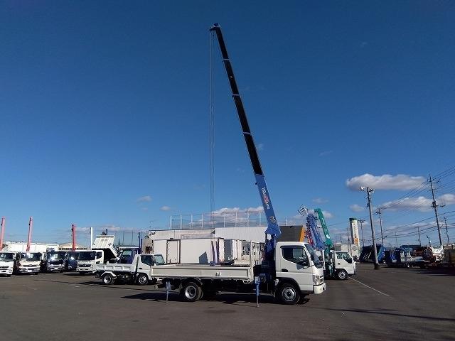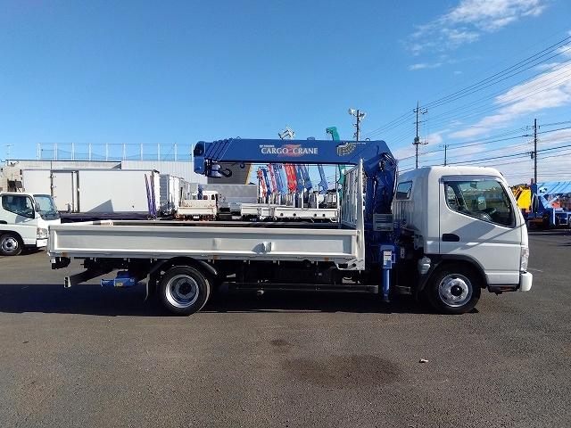 三菱ふそう キャンター クレーン付平ボディ 上物タダノ製 5段ブーム ラジコン付(無線) 2.9t吊り リアジャッキ付 フックイン ワイド超ロングボディ 積載3.4t 荷台寸法430x200x38 荷台床縞板張り