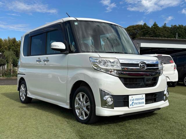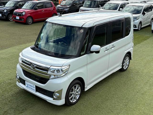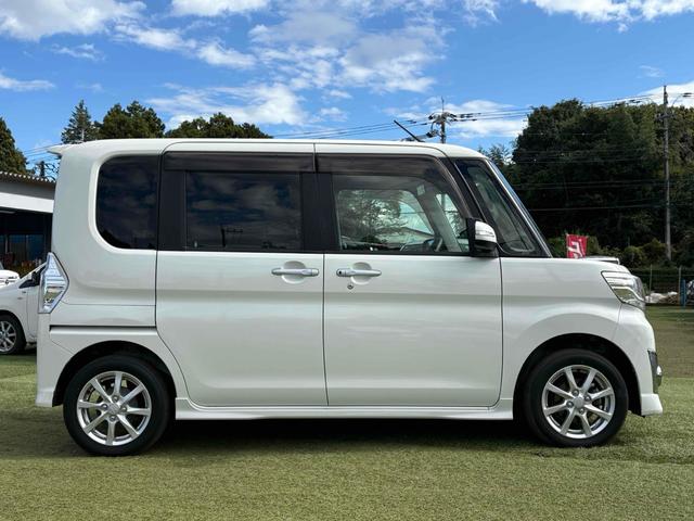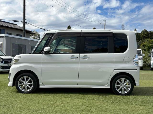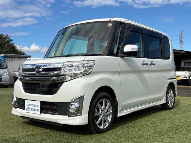 ダイハツ タントカスタムX SA 両側スライド・片側電動 ナビ 衝突被害軽減システム オートライト LEDヘッドランプ スマートキー アイドリングストップ 電動格納ミラー ベンチシート 後席モニター CVT 盗難防止システム ABS