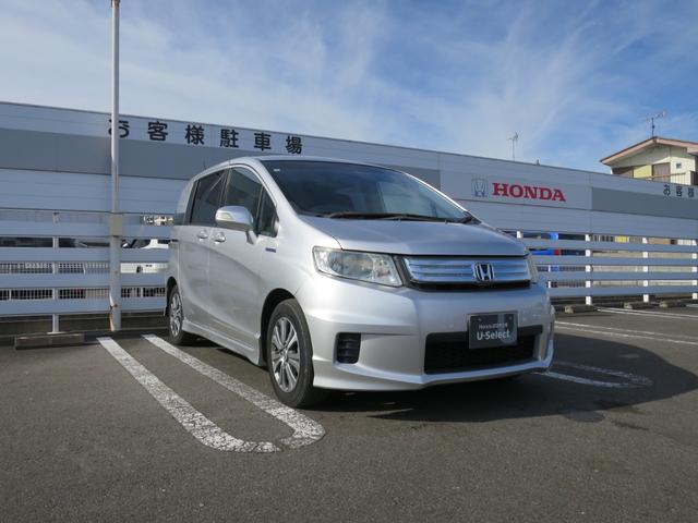 ホンダ フリードスパイクハイブリッドジャストセレクション Hondaインターナビ+リンクアップフリージャストセレクション装備ディスチャージヘッドライト(オートライトコントロール付)ドアミラーウィンカーパワースライドドア(リア左側) Sキー キーフリー 禁煙
