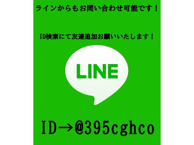 ラインでのお問い合わせも可能です! IDは @395cghco です。 現車確認の来店予約やローン審査、陸送料金の試算、各問い合わせにご利用ください!