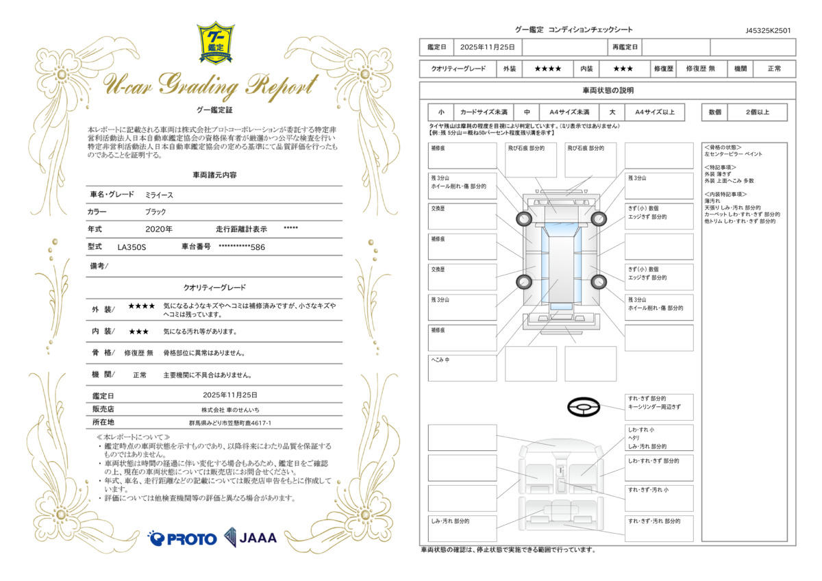 | 走行距離 | 5.0万km | 修復歴 | なし |