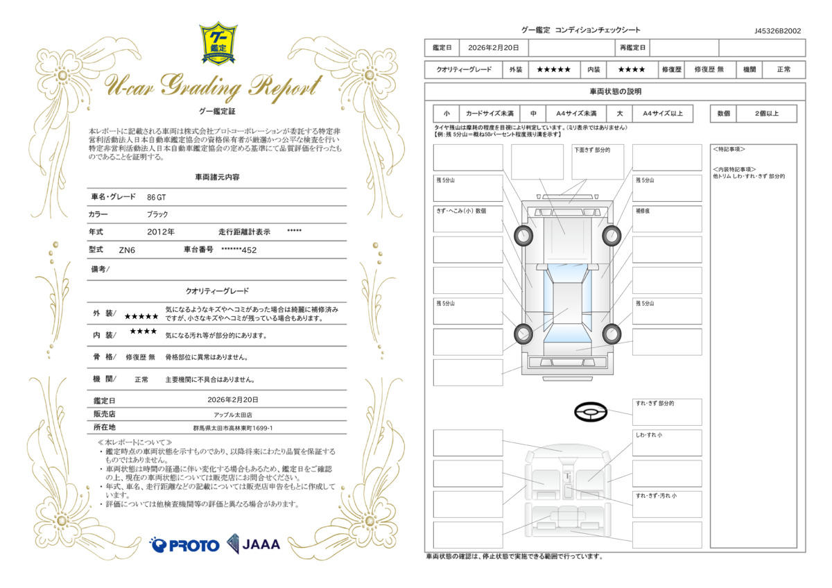 | 走行距離 | 4.8万km | 修復歴 | なし |