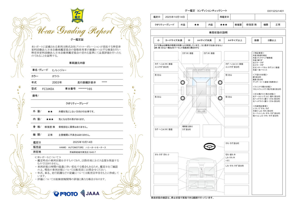 走行距離 | 12.9万km | 修復歴 | なし |
