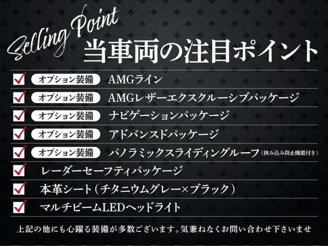 OP107相当!フルオプション車両!(OP)AMGライン・(OP)AMGレザーエクスクルーシブPKG・(OP)ナビゲーションPKG・(OP)アドバンスドPKG・(OP)パノラミックスライディングルーフ