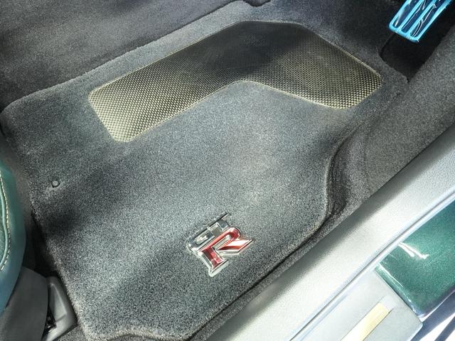 GT-R専用フロアカーペットにはアルミニウムダイキャスト製の「GT-R」エンブレムがフロント左右に付いています。