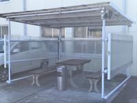 自社では、室内禁煙の為!!喫煙所も完備!!こちらで、リラックスしながらお話しするのもいいですよね!!