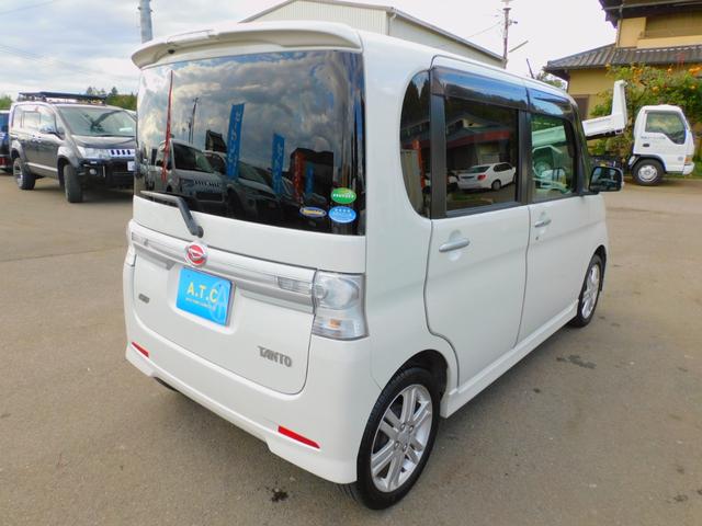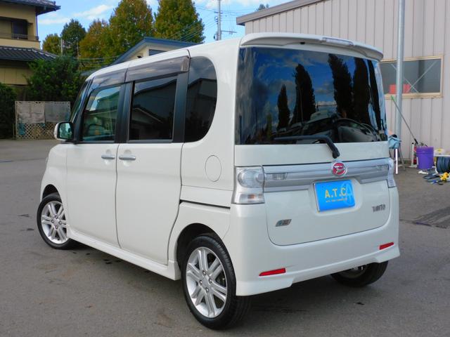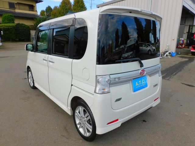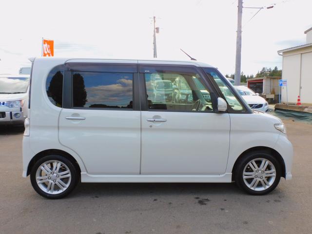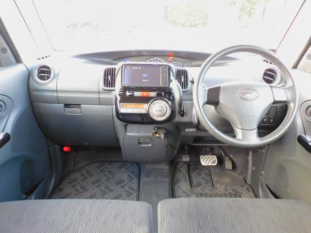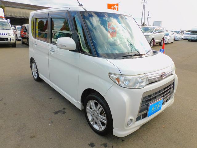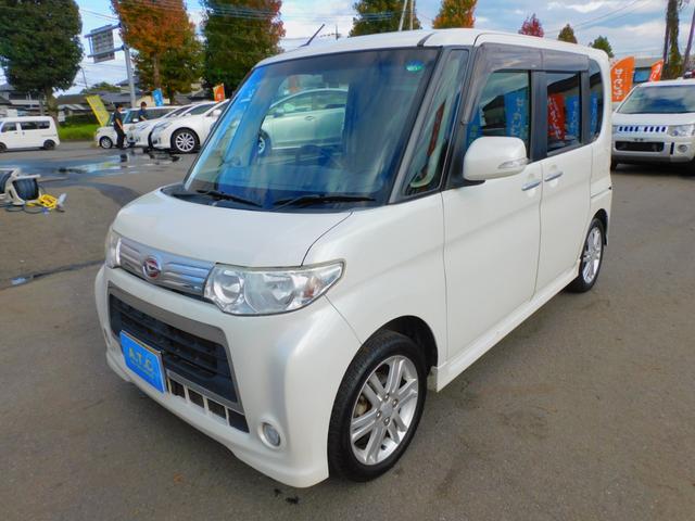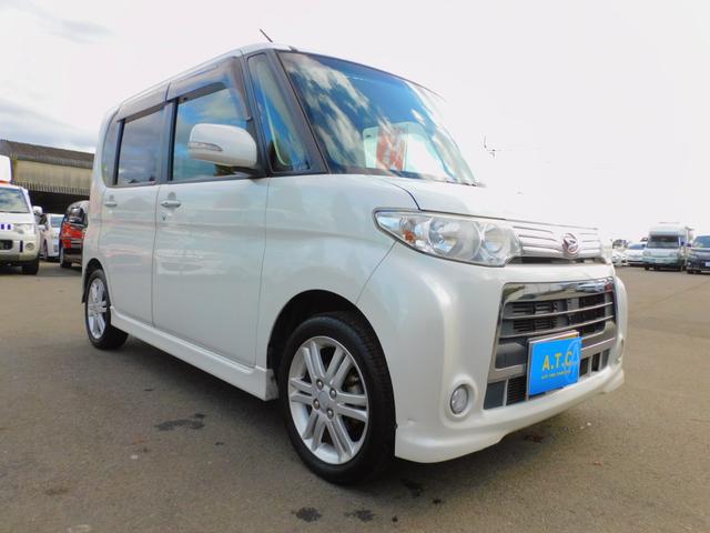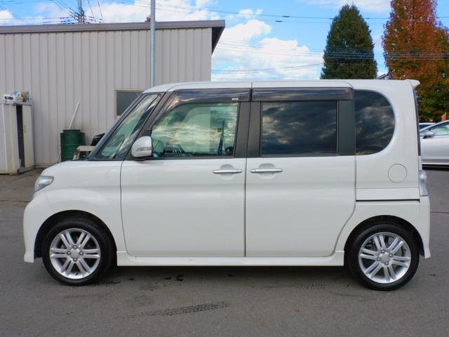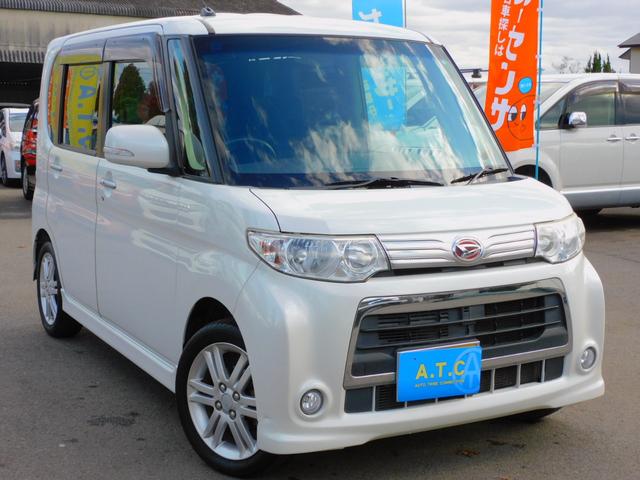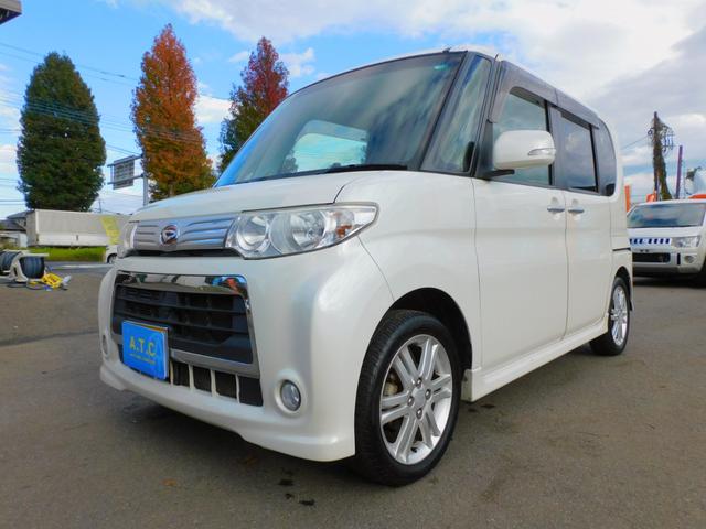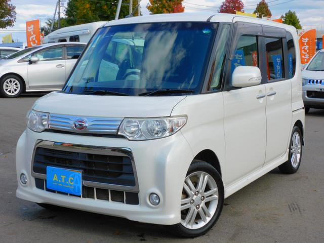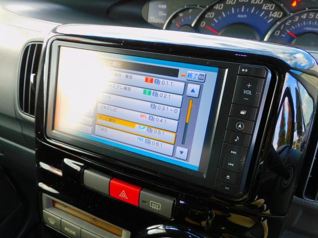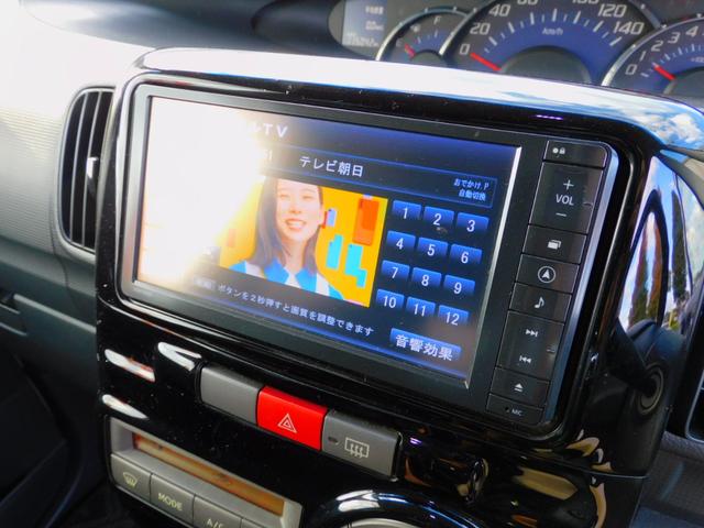ダイハツ タントカスタムRS パワースライドドア 純正ナビゲーション 地デジTV アイドリングストップ コラムオートマ ターボ インテリジェントキー Bluetooth オートエアコン DVD再生可 ピラーレス 純正アルミホイール