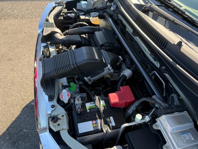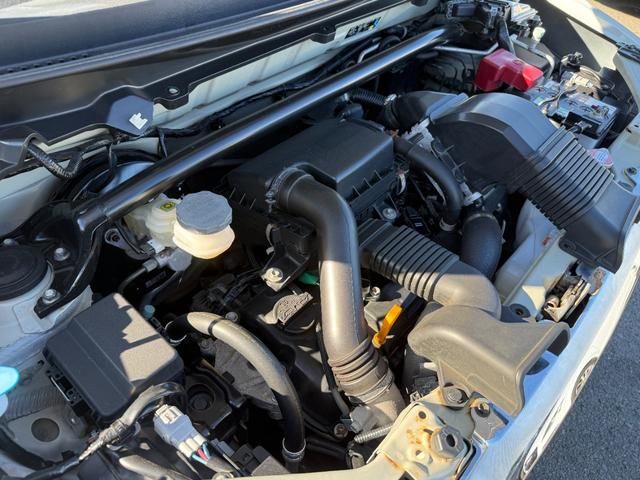エンジンの異音・オイル漏れ・におい等を確認しフロント部の骨格に損傷・修正・交換がないかライトを使用し入念に確認します。