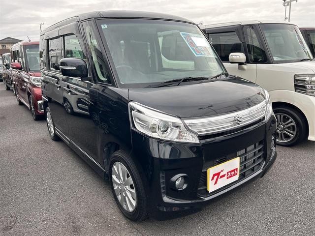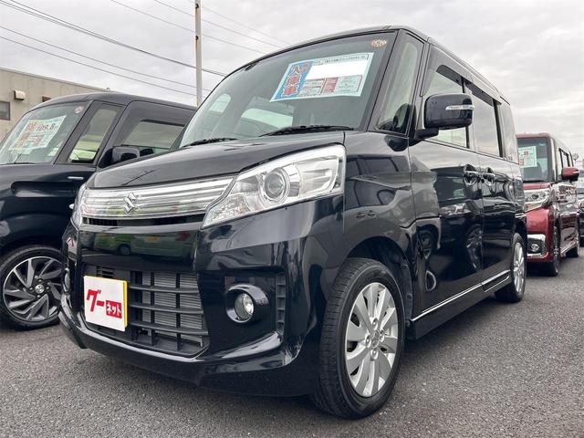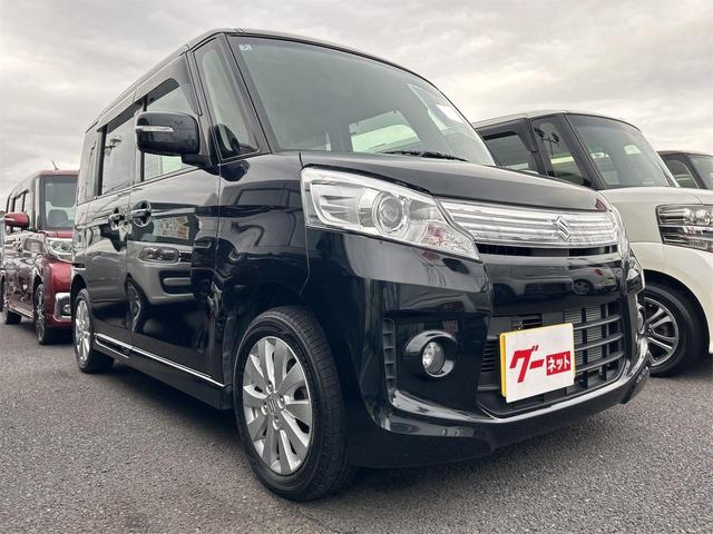スズキ スペーシアカスタムXS バックカメラ 両側スライド・片側電動 ナビ TV オートライト HID スマートキー アイドリングストップ 電動格納ミラー ベンチシート CVT 盗難防止システム ABS USB