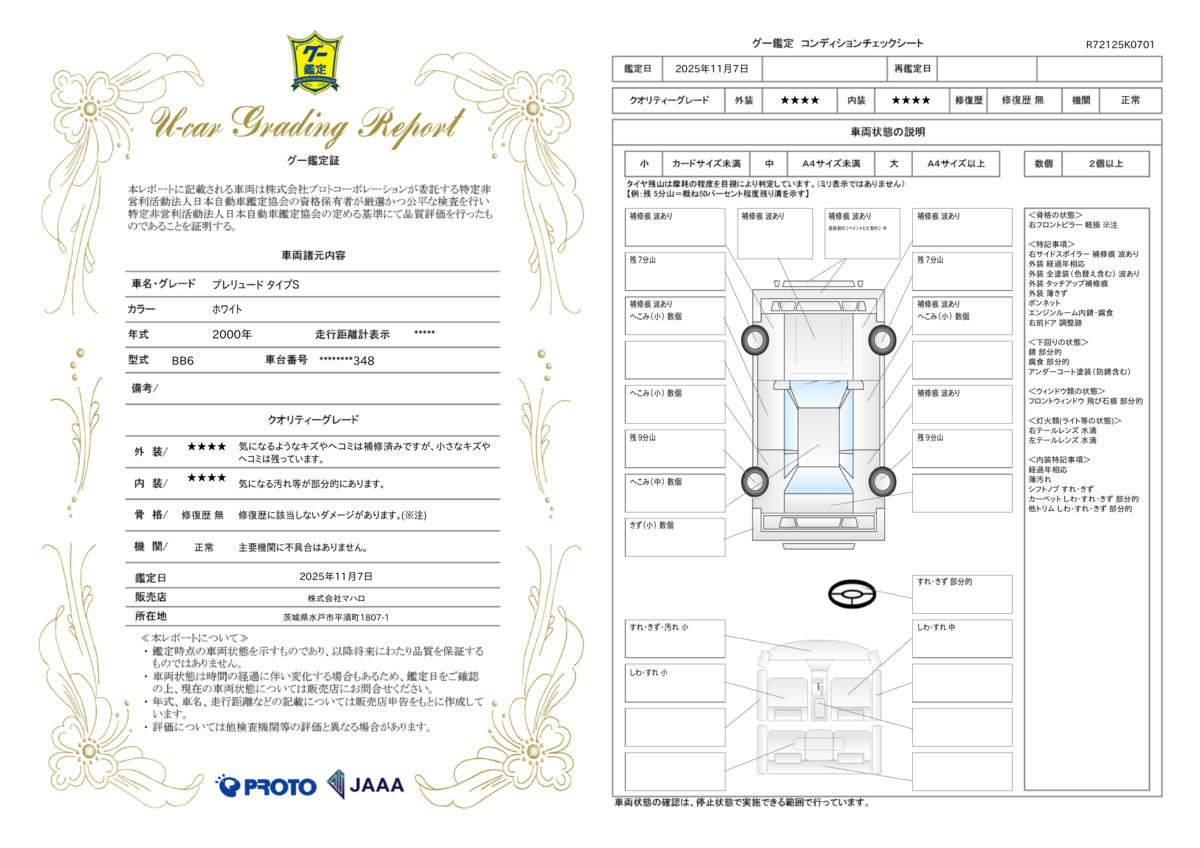| 走行距離 | 12.1万km | 修復歴 | なし |