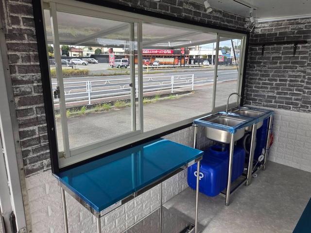 【ケータリング部分】(未使用品多数) 左サイドウイング開き&外テーブル 雨などしのげる便利な後部跳ね上げ式扉 Wシンク 電動給水ポンプ 100L給水タンク 100L排水タンク