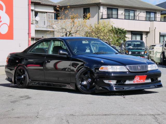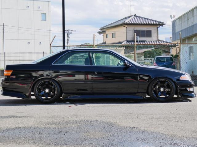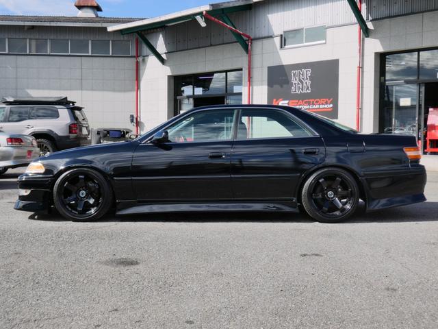 トヨタ マークIIグランデG 5速載替公認済 前期1JZツインターボEG 車高調 新品18インチAW 新品タイヤ フルエアロ 手引きサイド移設済 電ファン化 社外インタークーラ HKSエアクリ OP空気清浄機 デジタルメーター