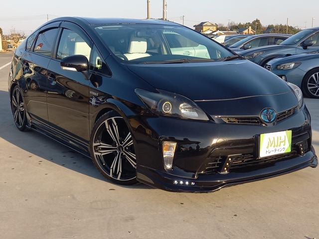トヨタ プリウスL 社外フルエアロ ナビ TV Bluetoothオーディオ 社外19インチアルミホイール オートライト デジタルインナーミラー プッシュスタート スマートキー 電動格納ミラー ドアバイザー