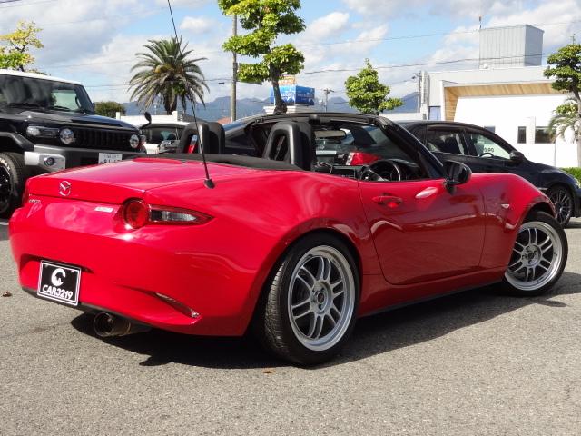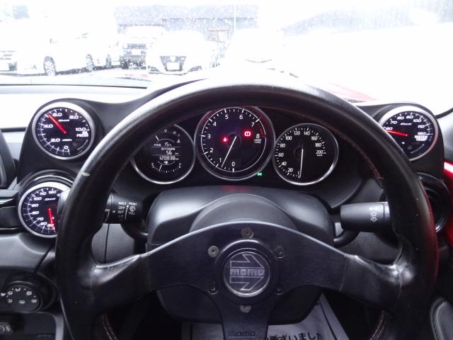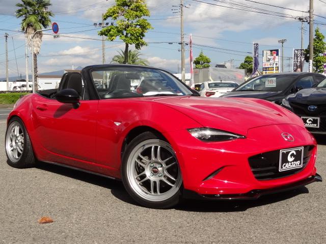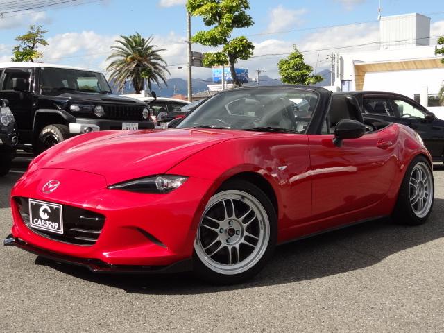 マツダ ロードスターNR-A 6速MT クラシックレッド全塗装 モータースポーツベースグレード 大容量ラジエーター 大径ブレーキ HKS HIPERMAX IV GT車高調 ENKEI RP-F1アルミ 社外マフラー Defi