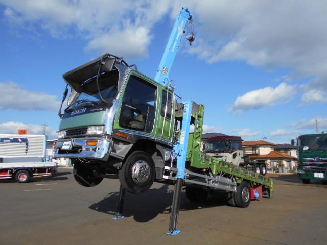 いすゞ フォワード クレーン付きハイジャッキセルフ 上物タダノ製 4段ブーム ラジコン(無線) フックイン 2.93t吊り ロングジャッキ 荷台寸法496×216×20 荷台床木張り ロープ穴4対 アユミ掛け