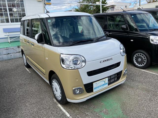 ダイハツ ムーヴキャンバスストライプスGターボ 届出済未使用車 スマートキー LEDヘッドライト アラウンドビュー