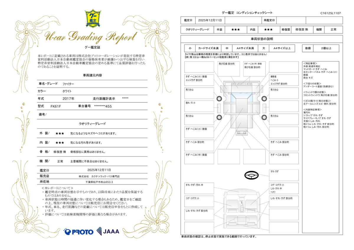 | 走行距離 | 18.4万km | 修復歴 | なし |