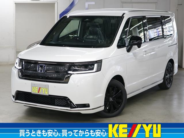 ホンダ ステップワゴンeHEVスパーダプレミアムラインブラックエディション 登録済未使用車 15.6インチリヤモニター 11.4インチナビ マルチビューカメラ 後退出庫サポート・BSI 前後シートヒーター オットマン パワーバックドア 両側電動スライドドア アダプティブLED