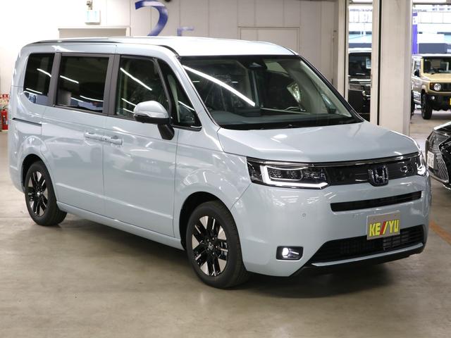 ホンダ ステップワゴンe:HEVエアー EX 登録済未使用車 ホンダセンシング 純正11.4インチナビ マルチビューカメラ 後退出庫サポート・BSI シートヒーター オットマン パワーバックドア 両側電動スライドドア 全列USB端子 パーキングセンサー LEDライト 純正16AW