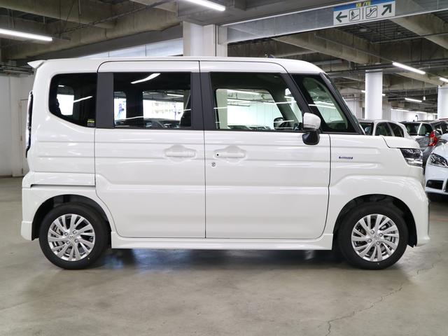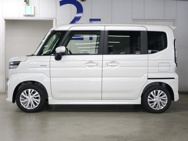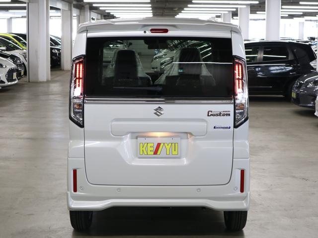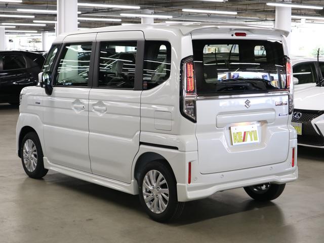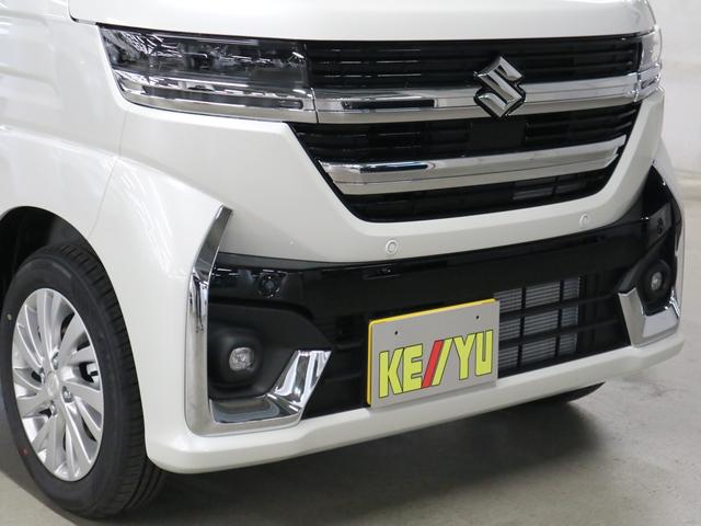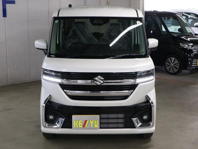スズキ スペーシアカスタムハイブリッドGS 4WD 届出済未使用車 デュアルセンサーブレーキサポートII 全車速追従クルコン 車線逸脱警報 シートヒーター パワースライドドア オートブレーキホールド 後席サンシェード シートアンダーボックス LEDライト 純正14AW