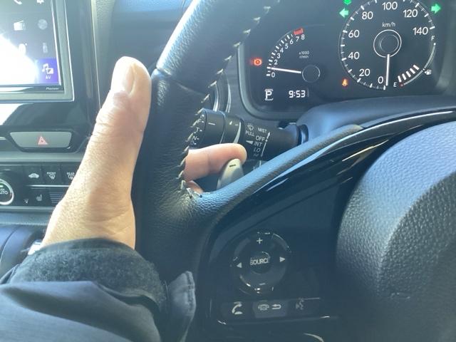 ハンドルオーディオリモコン。手元でオーディオの操作が可能です。走行中でもハンドルから手を離さずに操作ができて安心です。